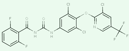 苯甲酰脲類昆蟲生長調(diào)節(jié)劑。廣譜性殺蟲劑,以胃毒作用為主,兼有較強(qiáng)的觸殺作用,滲透性較差,無內(nèi)吸作用。可抑制幾丁質(zhì)形成,阻礙害蟲正常蛻皮,使幼蟲蛻皮、蛹發(fā)育畸形,以及成蟲羽化,產(chǎn)卵受阻,從而達(dá)到殺蟲的效果。對多種鱗翅目害蟲及雙翅目、直翅目、膜翅目害蟲有效。還可用于甘藍(lán)、棉花、茶樹、果樹的多種害蟲。